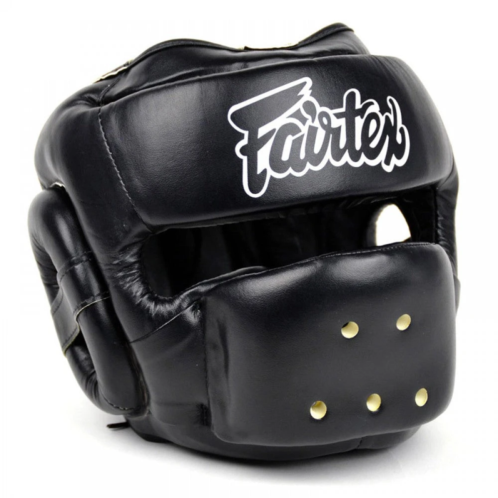 This Fairtex head guard provides full face protection and a special look at the gym. The metal built in the face barrier is a special feature. Blocking the launch of hard kicks and punches to the face. This head guard also includes an ear and chin cover, specially built and padded. This head guard is, of course, well packaged and comes with a nice fit, which, via a chinstrap, velcro closure at the back, and a lace size adjustment at the top, can be easily fitted. The head guard weighs less than 600g despite the optimum safety. Great for a recreational boxer, a white-collar boxer, or for very heavy sparring.