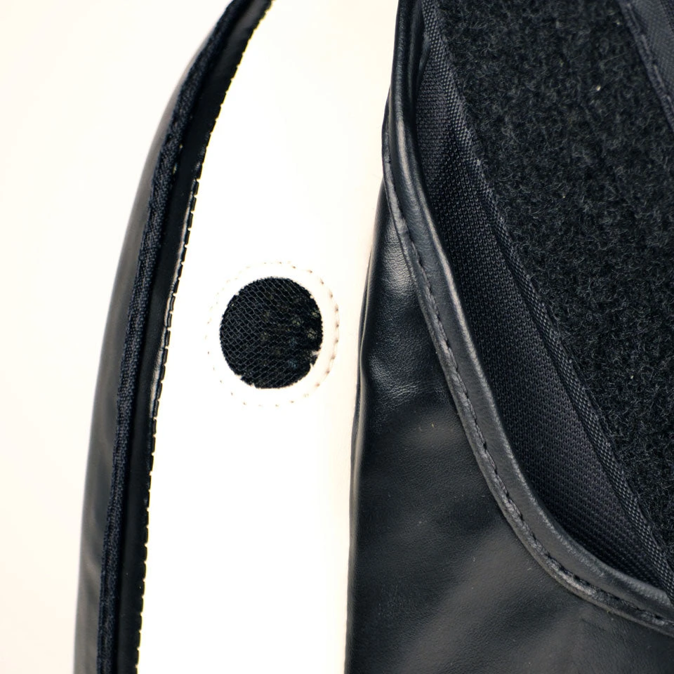 Features adjustable waist straps and clips to allow for a snug fit, and added waist support. There are 4 white targets on the pads, perfect for training kicking accuracy.